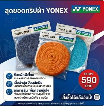 TOWER GRIP AC402EX-30 มีมา 3สี ส้ม กรม และฟ้า ขนาด 30mm x 1050cm กริ๊ปผ้าขนหนู โยเน็กซ์ AC402EX แบบม้วน Cotton 100%
